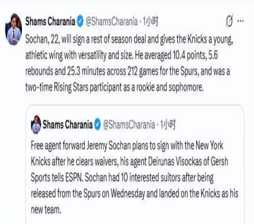 北京時間2月13日,據(jù)名記Shams報道,杰里米-索漢計劃在度過澄清期后加盟紐約尼克斯。