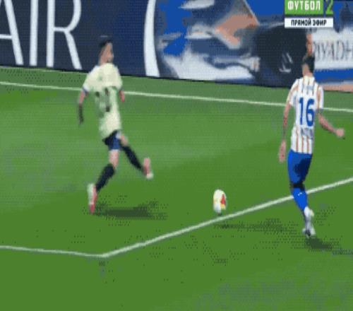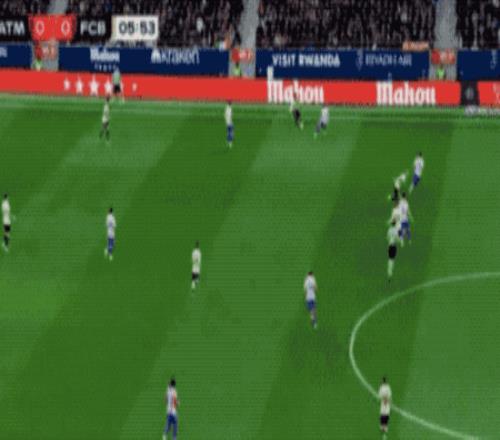 第43分鐘,馬競再次打穿巴薩的左路防線,小西蒙尼的傳球稍稍有些大,盧克曼跟進沒能碰到皮球,怒捶草皮。