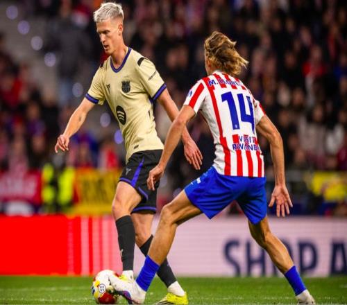上半場補時階段,巴薩又丟球了,盧克曼投桃報李倒三角傳球,阿爾瓦雷斯冷靜將球打進。