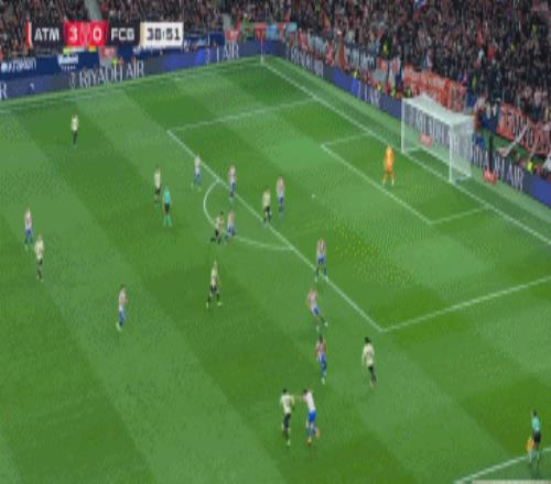 第45+3分鐘,打花了!阿爾瓦雷斯禁區前抽射破門,馬競4-0巴薩