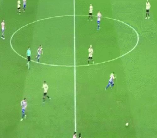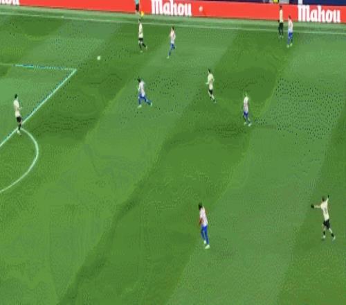 上半場補時第2分鐘,盧克曼得球橫傳,阿爾瓦雷斯跟進爆射破門,比分4-0,馬競40分鐘連入4球!
