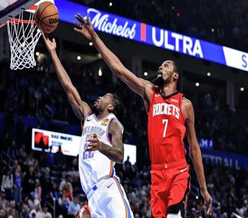 這一點在比賽中體現得淋漓盡致:火箭的進攻不再那么便秘,球的流動更順暢,杜蘭特和申京的接球機會明顯增加。火箭本賽季進攻端最大的問題依然是可靠投手不足。缺少足夠的穩定外線火力,導致球隊經常陷入單打獨斗的困境。常規首發陣容中,如果擺出阿門、伊森、史密斯、杜蘭特和申京,五人中阿門和申京都屬于非典型空間型球員(盡管申京有一定投射能力),對手很容易針對杜蘭特實施包夾。雷霆今天就是這么做的,全場用雙人包夾甚至“搓澡工”式貼防限制杜蘭特,讓他難以輕松得分。如果阿門今天能健康出戰,火箭的進攻可能還會更擁擠,贏球難度進一步加大。