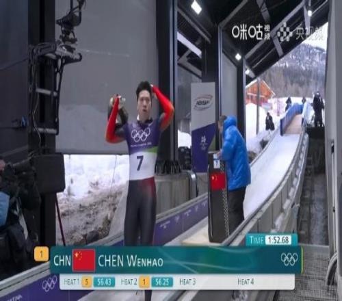 米蘭冬奧會男子鋼架雪車第2組:中國選手陳文浩1分52秒68,排第4