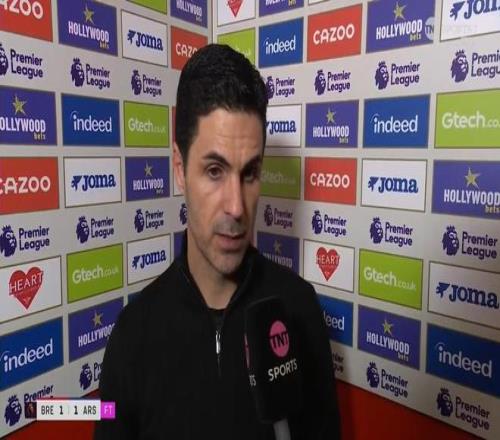 率隊在英超第26輪客場1-1戰平布倫特福德之后,阿森納主教練阿爾特塔接受了來自TNT體育的采訪。