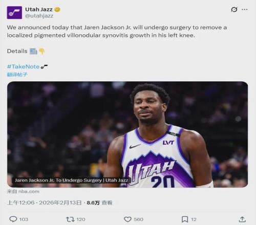 今天凌晨,猶他爵士隊官方宣布:小賈倫-杰克遜將接受手術,切除左膝局部色素絨毛結節性滑膜炎增生,本賽季報銷。NBA名記Tim MacMahon補充報道,爵士在交易體檢的過程中,已經發現了這個問題,但爵士堅持完成了交易。