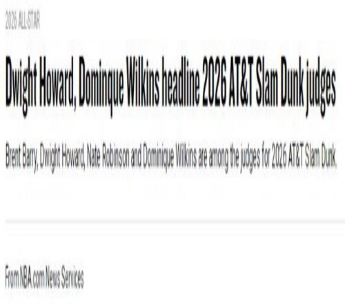 NBA官宣今年NBA全明星扣籃大賽的評委,分別是扣籃大賽2冠王人類電影精華威爾金斯、扣籃大賽3冠王小土豆羅賓遜,以及獲得過1次扣籃大賽冠軍的魔獸霍華德與布倫特-巴里,外加還將投票選出第5位評委,他們的星光也是完勝今年扣籃大賽的4位球員。