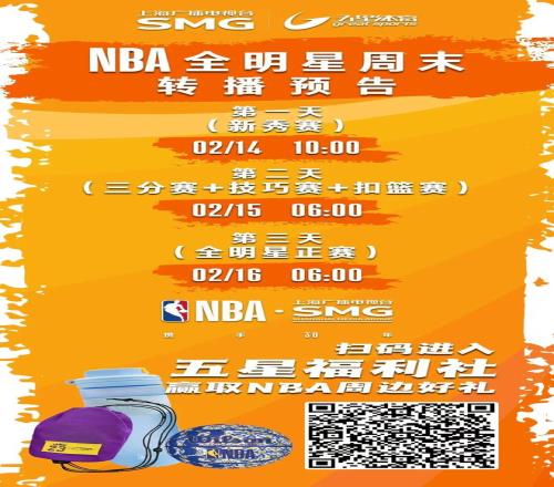 2026年NBA全明星周末即將在洛杉磯盛大舉行,本屆賽事迎來重大變革,正賽首次采用"美國隊VS世界隊"的三隊循環賽模式,而倍受中國球迷關注的新秀挑戰賽同樣看點十足。五星體育頻道將于2月14日至16日對本屆全明星周末進行全程轉播!特別聚焦中國球員楊瀚森在發展聯盟隊的表現,請與我們一同為瀚森加油!