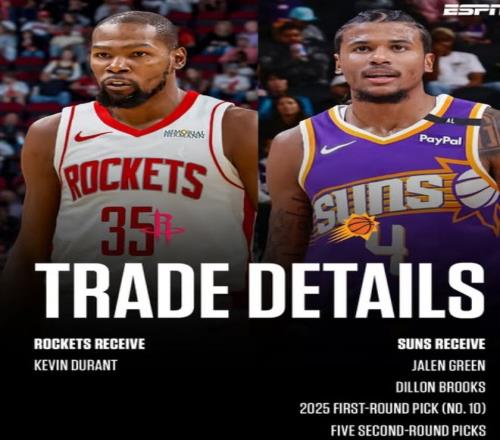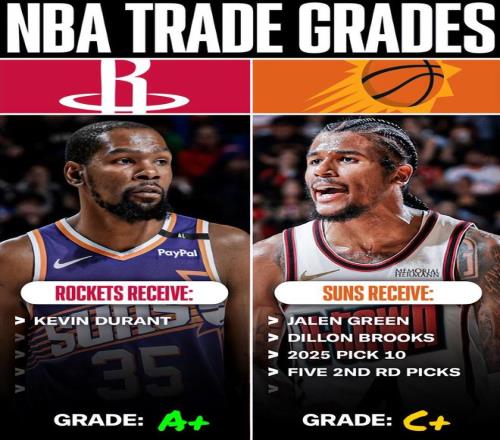 去年休賽期火箭隊用杰倫-格林、狄龍、2025年10號簽、5個次輪簽從太陽換來了凱文-杜蘭特,CBS、TA、ESPN多個權威媒體都給出了A-或A的交易評級,可隨著賽季的深入這種風評呈現了相反的態勢。