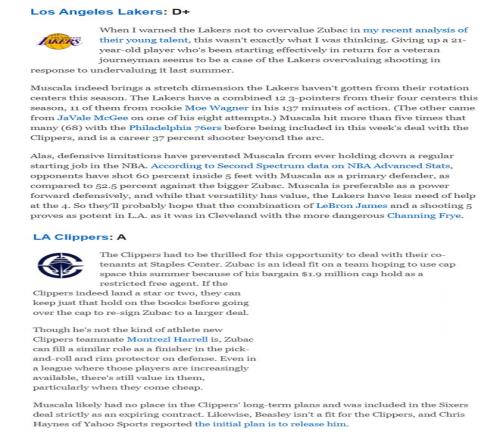 翻開當時ESPN對這筆交易的評價,湖人只有D+,快船則得到了A,也能說明這筆交易有多么得讓人意外。