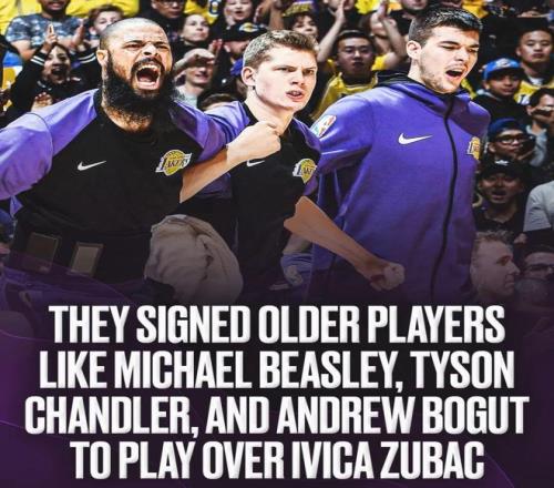7、2018-19賽季,湖人簽下了比斯利,并且寧可讓比斯利打替補中鋒,也不給祖巴茨鍛煉機會,此外,湖人還簽下了36歲的錢德勒,后者場均上場16.4分鐘,角色和上場時間均在祖巴茨之前;