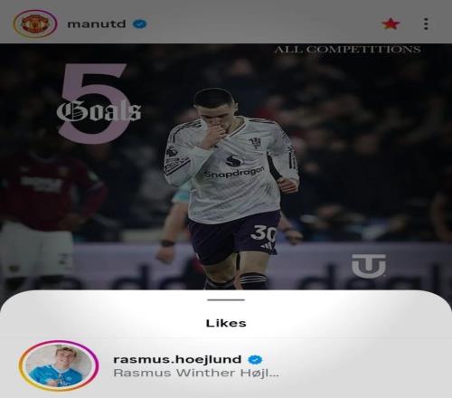 霍伊倫點(diǎn)贊曼聯(lián)官方發(fā)布謝什科近期各項(xiàng)賽事打入5球的帖子[心][心]