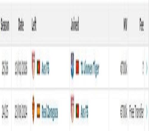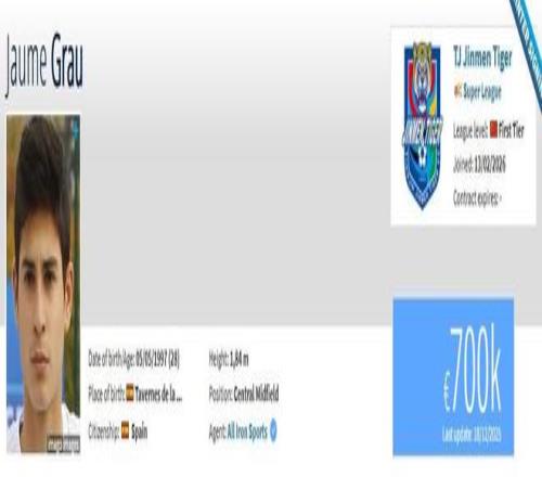 豪梅-格勞已與天津津門虎會合。現(xiàn)在球員在德轉(zhuǎn)上的身價為70萬歐元,他的轉(zhuǎn)會費(fèi)暫未顯示。