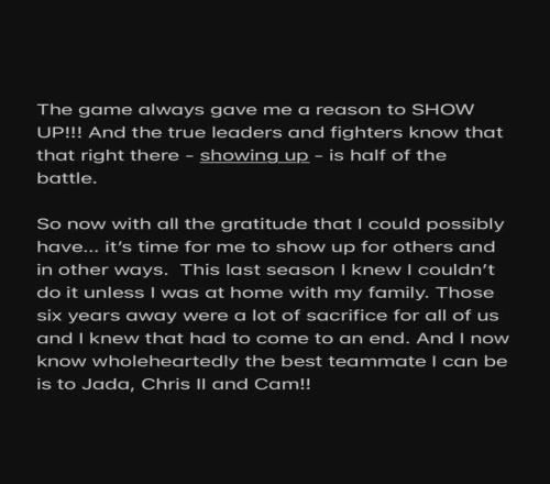 作為"NBA球員"的這一篇章已經結束,但籃球這項運動,早已刻進我的DNA,永遠不會離開我。