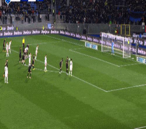 第70分鐘,比薩球員橫敲中路,被米蘭后防檔了一下,皮球剛好澆在洛約拉跟前,后者跟進一腳勁射破門,將比分扳成1-1,雙方又回到同一起跑線。