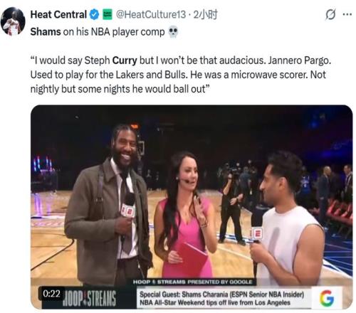 但Shams也不甘示弱,接受采訪被問到自己模版是誰。他則是毫不掩飾“我覺得我是庫里?!?/p>