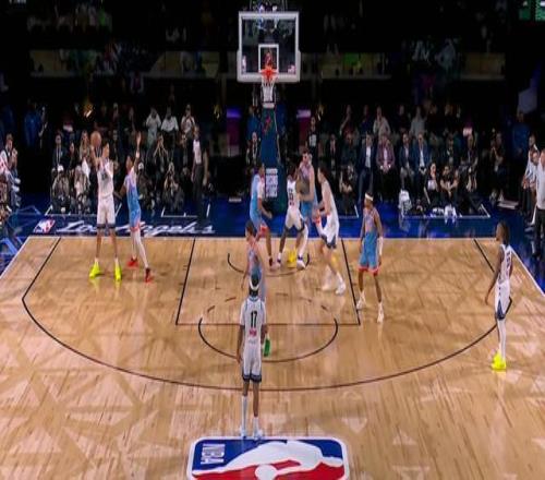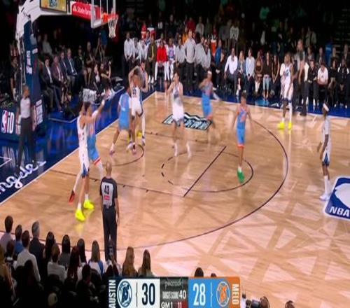 不過楊瀚森并沒有讓大家等太久,比分9-14的時候,楊瀚森被替換上場。這比賽是打分數的,不計時間,誰先到40分誰贏。在楊瀚森上場前,克林根大殺四方,在14分里拿到9分。