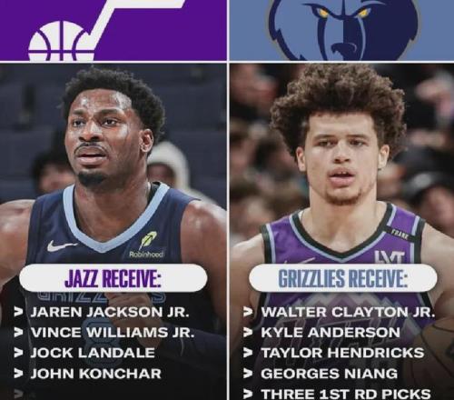 今年交易截止日前,爵士送出克萊頓+李凱爾+亨德里克斯+尼昂+三個首輪簽,從灰熊挖來3J+孔查爾+蘭代爾+小威廉姆斯。