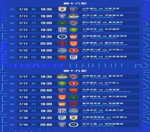 根據賽程安排,海港、申花和山東都是1主3客的賽程,其中衛冕冠軍上海海港從第16輪起,將連續做客河南和青島西海岸,第18輪主場對陣大連英博,第19輪客場對陣云南玉昆。上賽季聯賽亞軍上海申花,將先后對陣大連英博、浙江隊、北京國安和天津津門虎,只有對陣浙江是在主場。上賽季的足協杯冠軍北京國安將迎來魔鬼賽程,在7月4日和7月11日先主后客對陣山東泰山和上海申花。