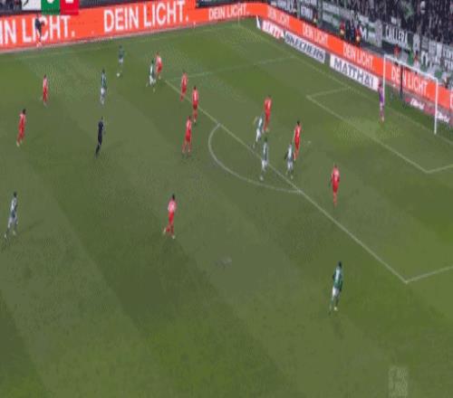 第29分鐘,凱恩回撤接應,一腳手術刀直傳打穿不萊梅的后防線,路易斯-迪亞斯左路高速插上,小角度射門被巴克豪斯撲出。