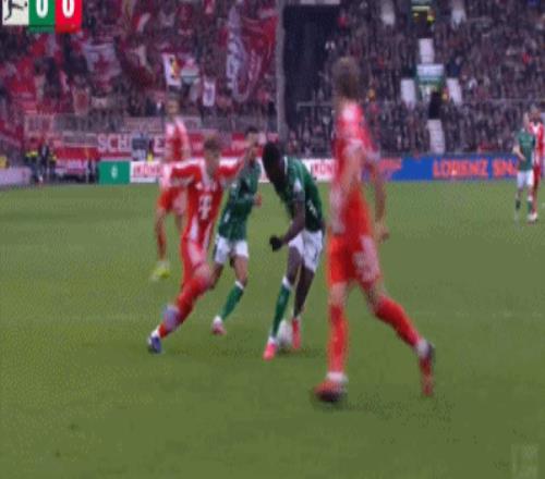 易邊再戰拜仁立馬進行調整,小將烏爾比希披掛上陣,諾伊爾被換下。下半場開打僅2分鐘,姆班古拉左路傳中,格呂爾頭球攻門,皮球擊中立柱彈出,不萊梅差點扳回一城。