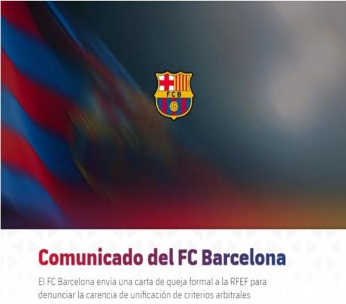 最近兩個賽季,西甲雙雄似乎都在裁判的問題上有很多的不滿,上賽季皇馬TV事件就鬧得沸沸揚揚,巴薩最近也因為國王杯半決賽輸給馬競的判罰正式發(fā)起了投訴。在輸球1天之后,巴薩官方宣布已經(jīng)正式向西班牙足協(xié)發(fā)起了投訴信,表達了對裁判判罰尺度不統(tǒng)一的不滿,文件的核心就是巴薩遭到了裁判不公正待遇,多次在巴薩的比賽當中出現(xiàn)了誤判的情況,導(dǎo)致球隊丟了很多分。