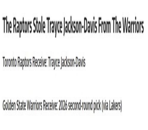 這是一筆典型的低價撿漏型交易,猛龍隊僅花費一枚次輪簽就從勇士拿下TJD這名合格的替補內線。