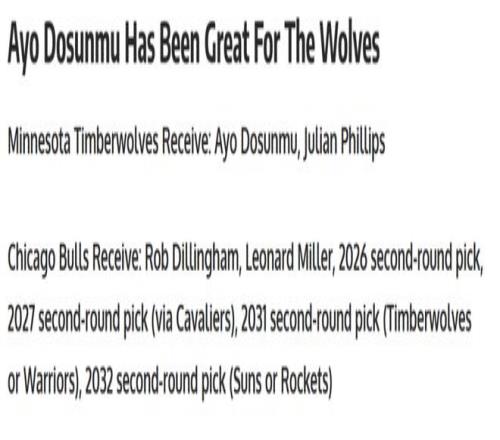 公牛得到:迪林厄姆+倫納德-米勒+4個次輪簽。