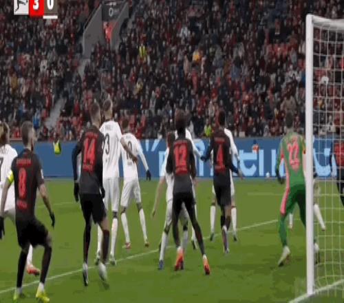 第51分鐘,勒沃庫森角球發出,塔普索巴后點頭球破門,勒沃庫森3-0領先