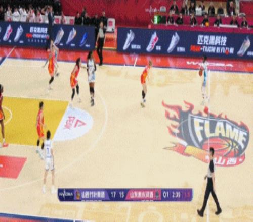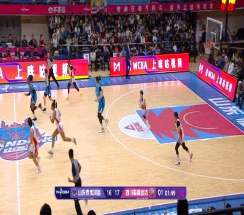 山東女籃對于聯防的落實其實一直都有些問題,連腳步遲緩的四川女籃大外援都可以獲得這種面朝大海的投籃機會