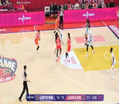簡單的弧頂轉移球,山東女籃的聯防被掩護擠在了一起,忽略了45°和底角的山西球員
