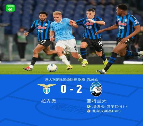 北京時間2月15日意大利足球頂級聯賽第25輪,拉齊奧主場對陣亞特蘭大。比賽中,上半場埃德松-席爾瓦點射破門首開紀錄,隨后貝爾納斯科尼助攻,扎萊夫斯基打進世界波。最終比分拉齊奧0-2亞特蘭大。