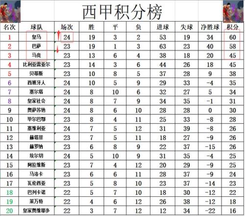 積分榜方面,皇馬先賽大勝后,再次暫時超過巴薩2分登頂,也是再次把壓力甩給了巴薩。馬競,比利亞雷亞爾差皇馬15分排在第3,第4。西班牙人下半程戰(zhàn)績急速下滑,今天又是無力贏球,多賽的情況下,還差貝蒂斯3分。