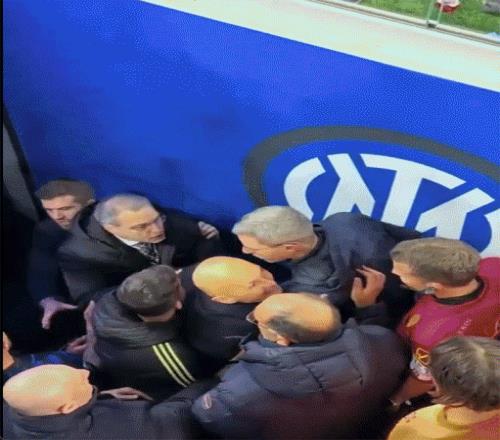 斯帕萊蒂率先開啟了這波鬧劇——他與主裁判激烈爭吵,在裁判快要忍無可忍時,尤文助教法布里斯和二門佩林奮力將這位老帥推開。