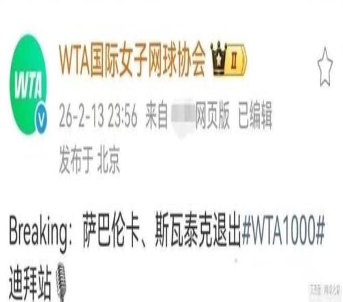 不過,外界在談起迪拜的這股退賽潮時(shí),則讓薩巴倫卡和斯瓦泰克意外成了球迷和網(wǎng)友們的重點(diǎn)調(diào)侃對象,稱澳網(wǎng)失冠對白俄羅斯姑娘打擊太大,迄今為止仍未從創(chuàng)傷中緩過來,需要繼續(xù)療傷,退賽完全可以理解。