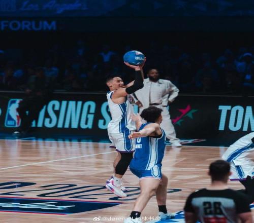 此次全明星,他與連續(xù)三年參賽的王鶴棣效力于字母哥隊,林書豪在末節(jié)連中四分球,其中還有一記四分球翻倍,成功得到12分。