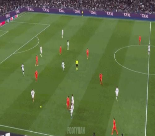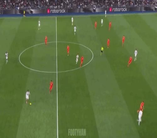 阿諾德這種大斜線轉移,簡潔、明了,能瞬間發起反擊(如下動圖)。這樣的傳球,會不會讓你想起莫德里奇、克羅斯?