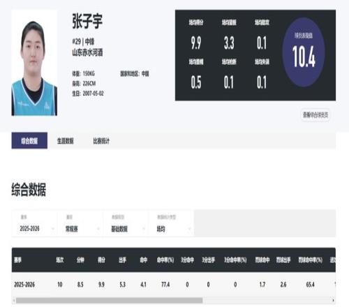 這兩場比賽張子宇合計只打了30分鐘,第一場16分鐘里,11中9,罰球3中3,拿到21分6籃板2助攻1蓋帽,命中率81.8%。
