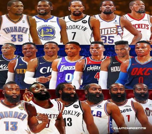 誰能想到,曾經的雷霆三少,如今成了聯盟里的“球衣收藏家”。賽季至今杜蘭特5隊,哈登6隊,威少7隊,而且有很大概率,這個數字還會繼續增加。