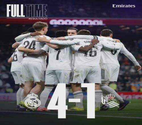 4-1!西甲第24輪,皇馬在伯納烏輕松拿下皇家社會(huì),先賽一場(chǎng)以60分登頂,豪取聯(lián)賽8連勝。阿諾德的助攻、巴爾韋德的遠(yuǎn)射、維尼修斯的梅開二度,一切看起來都那么完美。