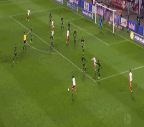第70分鐘,格拉巴拉開球失誤,格魯達助攻迪奧曼德破門,萊比錫1-1沃爾夫斯堡