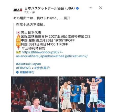 近期日本男籃發布的公開消息,內容有對陣中國男籃和韓國男籃的時間以及地點,并且說“在那個地方一定不能輸”。男籃世預賽第二階段日本隊主場在琉球沖繩群島,在這里日本隊曾經擊敗芬蘭隊,取得了直通奧運會的資格,這里被譽為日本男籃的福地,所以他們這次也是像中國男籃和韓國男籃發起挑戰,還有一些挑釁的意味。