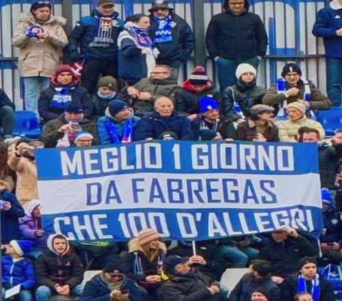 科莫球迷橫幅:當1天法布雷加斯勝過當100天阿萊格里 懂球帝 2026-02-16 10:12:59 科莫在意甲第25輪主場1-2負于佛羅倫薩,而看臺上的球迷打出的橫幅則讓米蘭主帥阿萊格里“躺著也中槍”。這些科莫球迷打出的橫幅上寫著“當1天的法布雷加斯勝過當100天的阿萊格里”,顯然這是對阿萊格里執教的球隊傾向于防守的球風的諷刺。不過科莫最終以1-2輸給了位列降級區的佛羅倫薩,而米蘭目前在聯賽中保持者23輪不敗的戰績,三天之后這里兩支球隊就將迎來本賽季的第二次交手。意甲免費觀看_科莫免費觀看_米蘭免費觀看_意甲高清在線_科莫高清在線_米蘭高清在線 意甲 科莫 米蘭 橫幅 佛羅倫薩 法布雷加斯 馬西米利亞諾·阿萊格里 上一篇: 22!意甲豪門掉隊:那不勒斯不勝+落后11分,國米爭冠剩半個對手 下一篇: 加斯佩里尼:如果上半賽程就擁有馬倫,我們可能還會多拿幾分