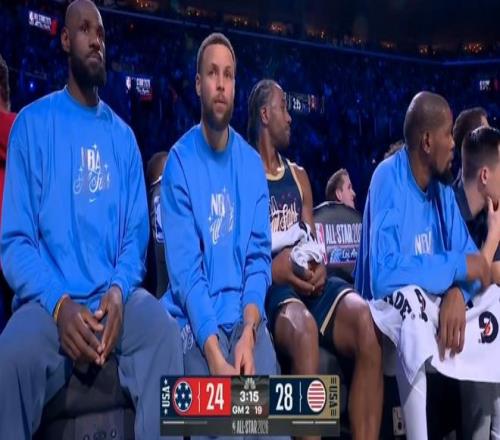 詹姆斯在自己第22次全明星之旅,合計得到15分7籃板5助攻,而杜蘭特合計得到12分3籃板2助攻3搶斷1蓋帽數(shù)據(jù)。