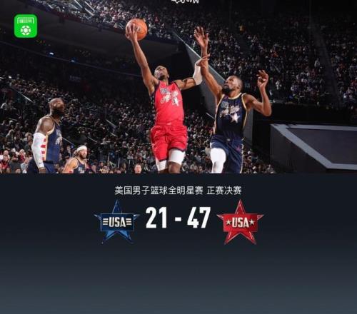 北京時間2月16日美國男子籃球全明星賽 正賽決賽,美國星條隊對陣美國星辰隊。開場美國星辰隊迅速取得12-1開局,隨著將分差拉大至20分以上,星條隊無力反撲,最終美國星辰隊47-21大勝星條隊奪得全明星正賽冠軍,愛德華茲榮獲MVP。