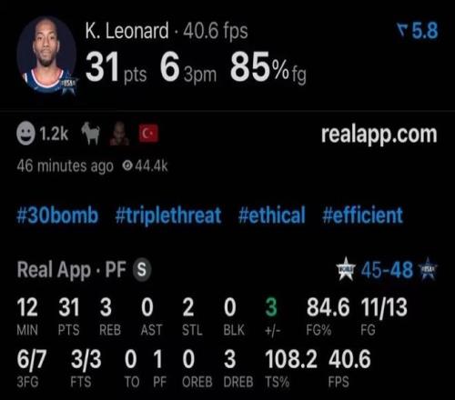 他獨得31分,而且效率超高,統治力爆表