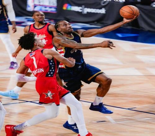 很難想象這樣的球員,竟然會進不去全明星,最后還是遞補進去的。這樣的全明星強度,也是倫納德最喜歡的。今年全明星堪稱是20年最后一節之后強度最大的一次,那次真的可以說是季后賽強度,倫納德的舒適區。