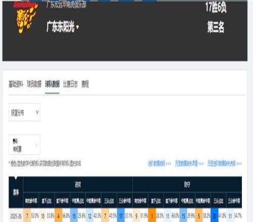 第一階段過后,廣東男籃的投籃分布,中距離占比僅為25.6%,籃下占比為33.8%,三分占比則高達(dá)40.5%。由此可見,外線投射是廣東隊(duì)的主要得分手段,球隊(duì)更強(qiáng)調(diào)外線進(jìn)攻。但問題是,他們進(jìn)攻端的三分命中率只有33.1%,該數(shù)據(jù)僅排在聯(lián)盟第17位,整體效率很低。