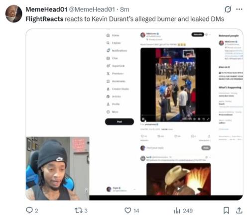 除了杜蘭特疑似小號的事件,北京時間2月16日,美國網紅FlightReacts還在個人社媒上吐槽杜蘭特,他表示杜蘭特在全明星賽前還在玩手機,他寫道:KD啊,別再刷社媒了,被再用你的小號了,不要在社媒上跟別人對線了,好好打籃球吧!停止用社媒吧,專心打完這個賽季再說。