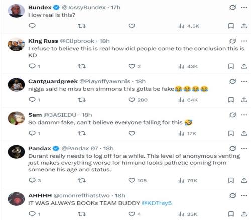 評論區(qū)的球迷們對這些言論多數(shù)是存疑的,但也有一些人覺得這像是杜蘭特的作風,希望杜蘭特本人回應來辟謠。
