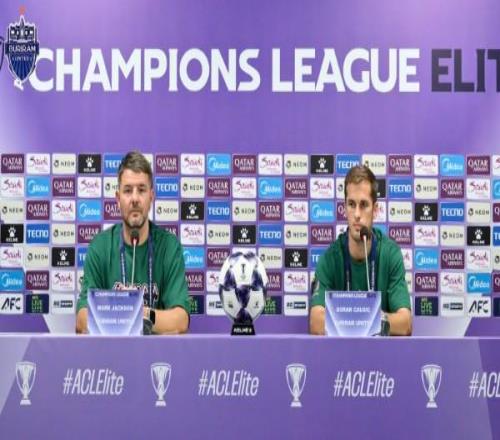 北京時(shí)間2月16日,在亞冠精英聯(lián)賽階段收官戰(zhàn),武里南聯(lián)主場對陣上海申花的賽前,武里南聯(lián)主帥馬克-杰克遜和隊(duì)員喬希奇出席了新聞發(fā)布會(huì)。